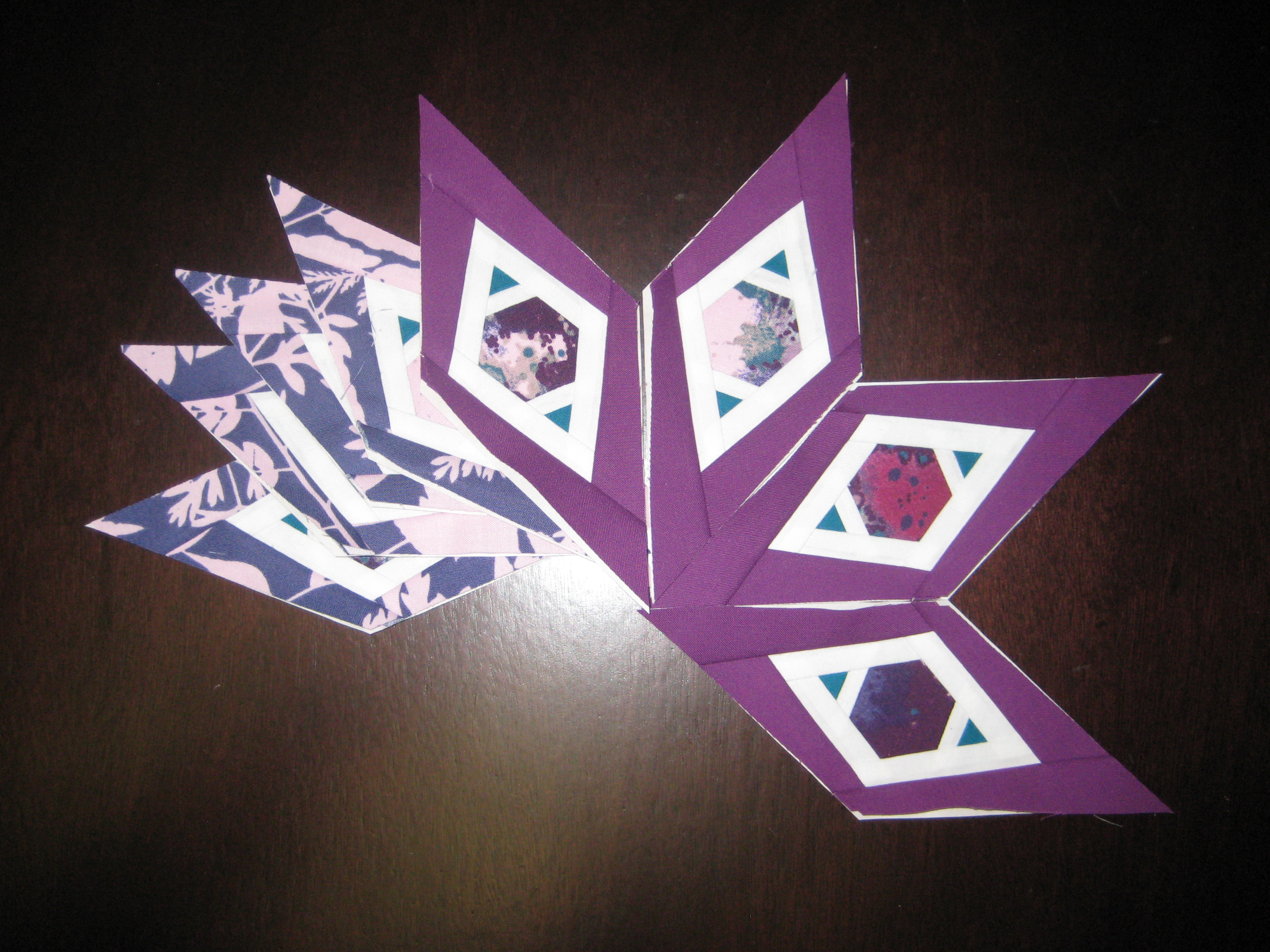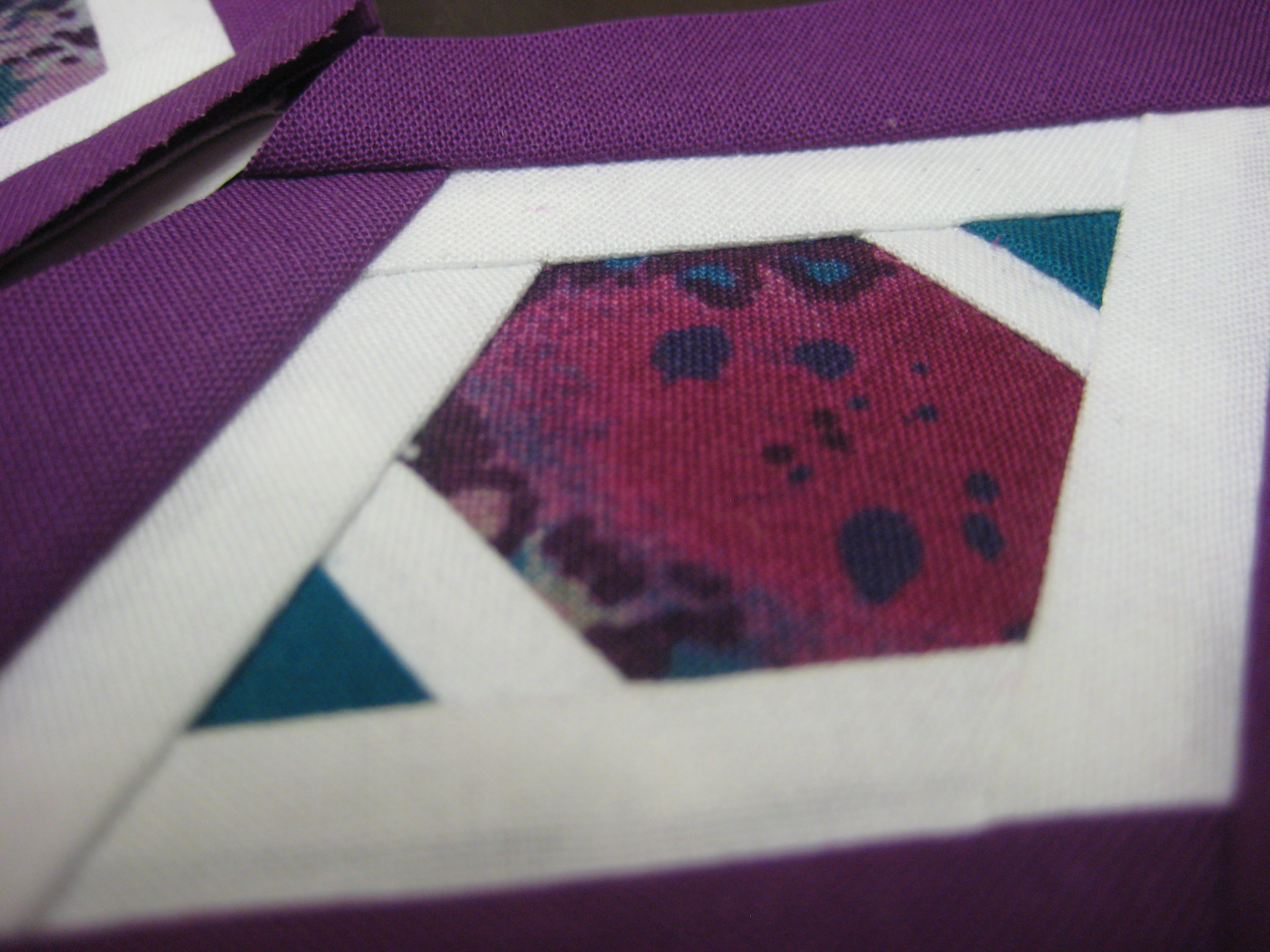 Hexagon Star Sneak-Peek This is the block I designed for my Quilt Con entry quilt. Its not due until November, so I hope to have it finished by the first! Here is a sneak peek of the star point. Stay tuned for more! Happy Quilting! Share this: Click to share on X (Opens in new window) X Click to share on Facebook (Opens in new window) Facebook Like Loading... Related