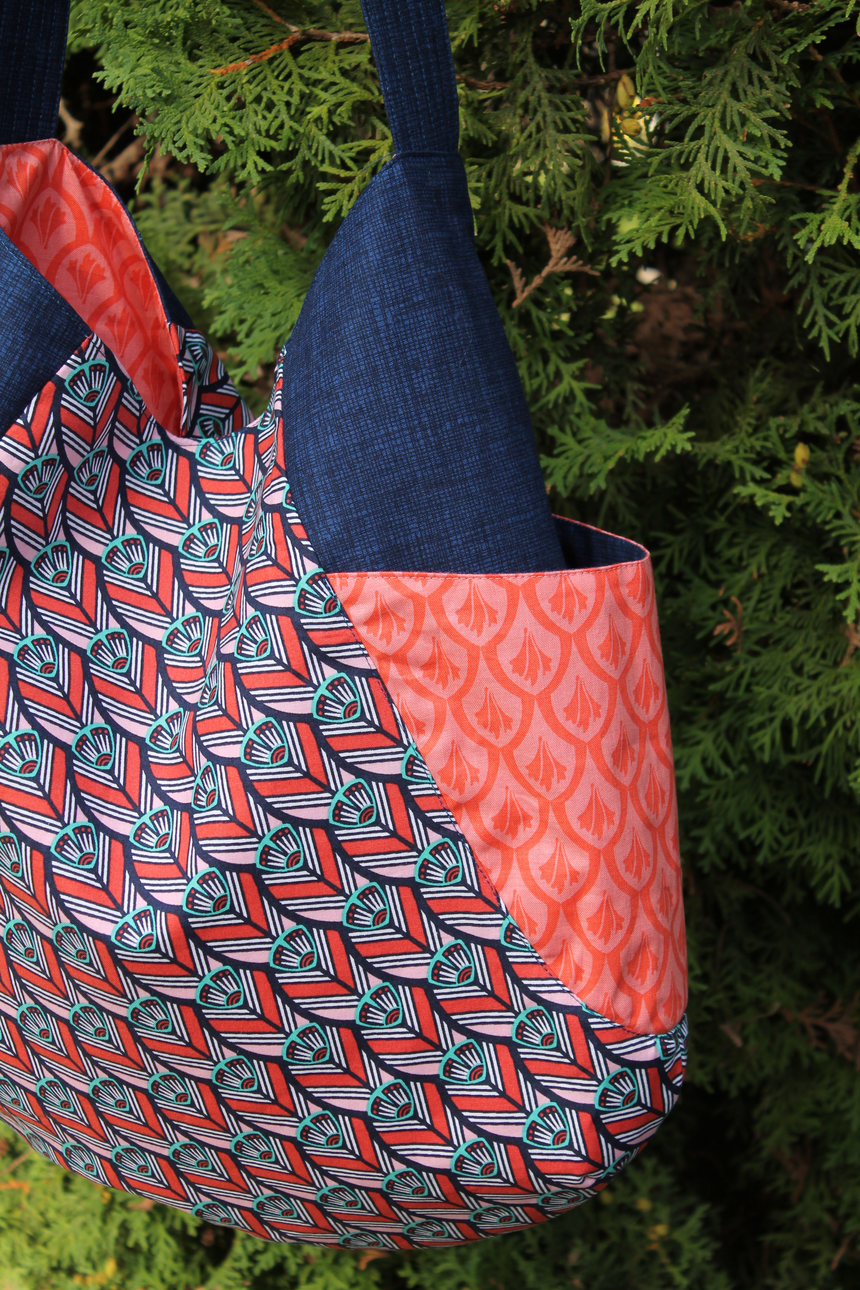I used a Navy Sketch Basic from Timeless Treasures for the sides and strap, which perfectly complimented the Of a Feather print I have been hoarding from the Tsuru collection by Rashida Coleman-Hale. I have yards of it, and was going to use it for bindings, but the print cried out in happiness as I pulled it from my stash for this bag. That pretty coral scallop is a hard to find print from the Vintage Verona Collection by Emily Taylor Designs for Riley Blake. I used it for the lining as well, and the navy I used for the pocket lining. All about balance! Here are the runner up pulls for this bag. Some may still be made, i just need find more interfacing!