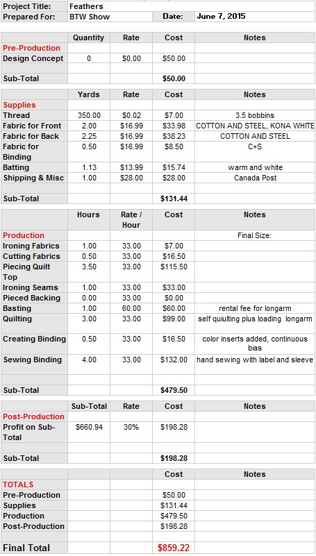 Feathers Cost Sheet Published June 7, 2015 at 455 × 801 in It’s Worth WHAT?!?- The Feather Quilt and a retreat « Previous Next »