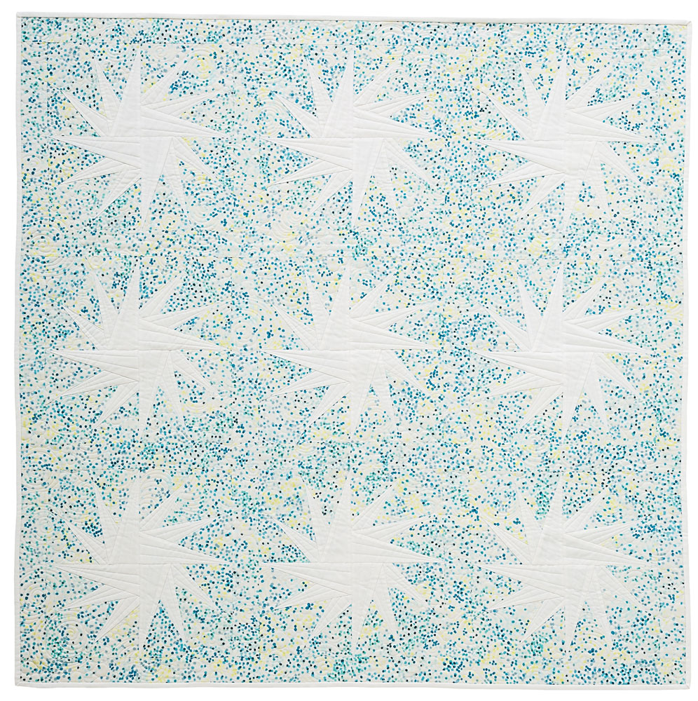 The cover quilt is also a huge hit with me. Icy Waters looks exactly how icy water feels ( I have first hand experience with that). It was sneak peeks of this quilt that led me to Amy’s blog and book in the first place. Again in person, it is stunning. This particular beauty was quilted by the esteemed Angela Walters, and she really captured that watery feel and softened all the straight edges with swirls.
