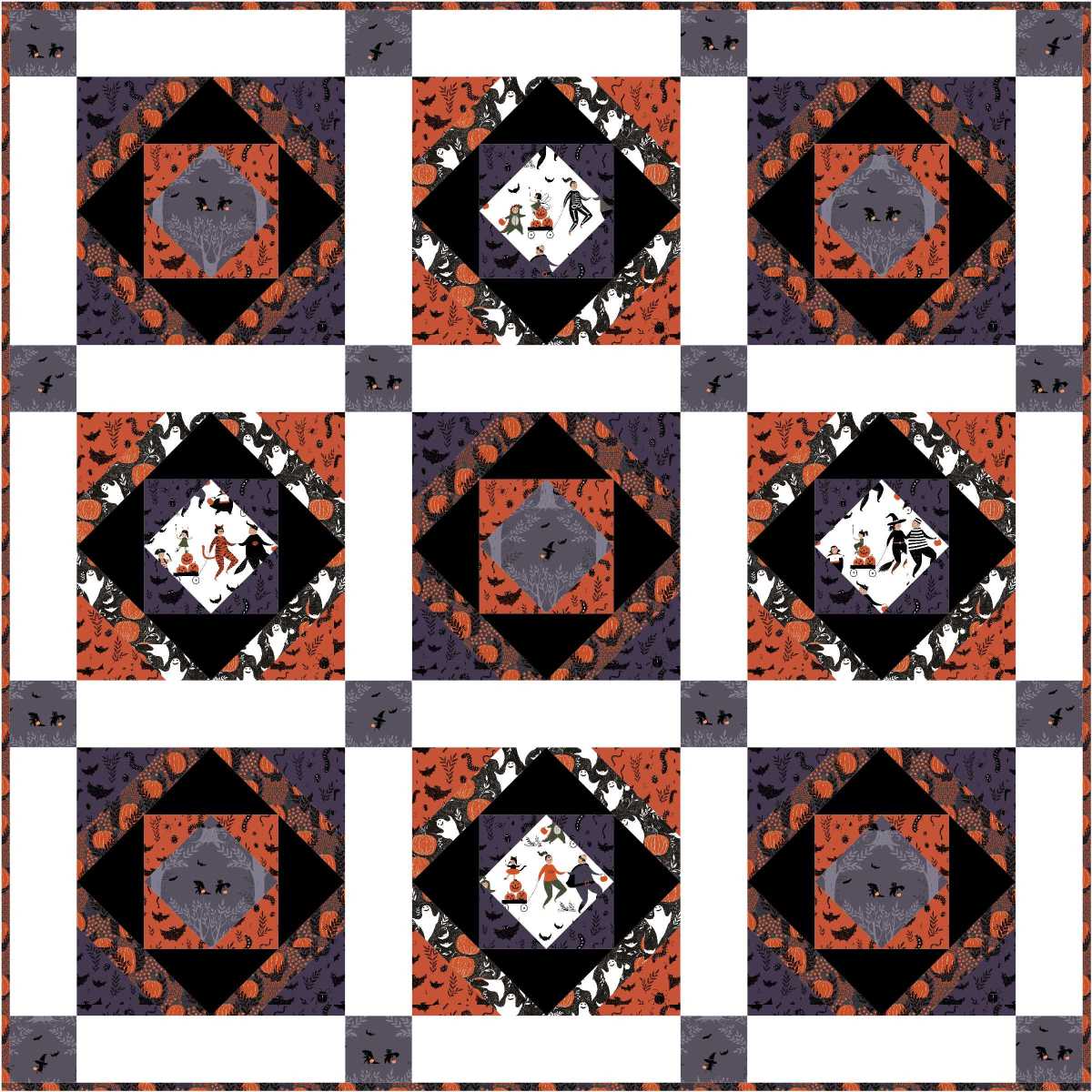 This Tricks a Treat Wall Quilt Published February 28, 2015 at 2400 × 2400 in Free Patterns « Previous Next » Coming Soon- This Tricks a Treat Wall Quilt featuring Mischief Night collection Like Loading...