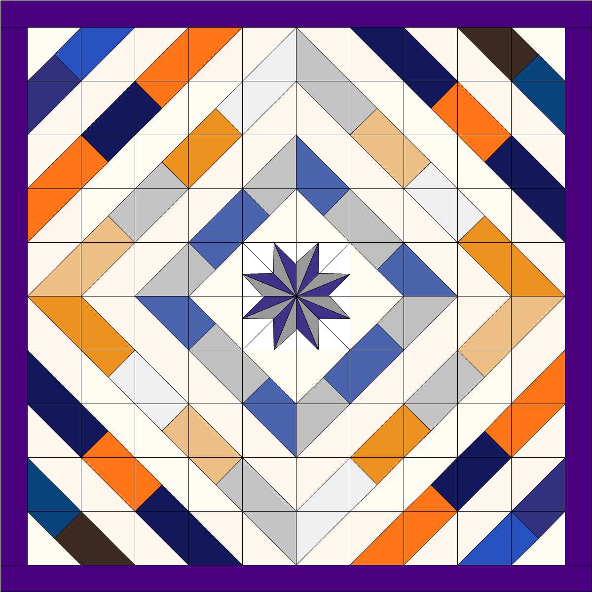 The layout sheet is a good visual reference to have on hand for the placement of your squares, the layout of the diagonal strips and the orientation of the filler triangles.