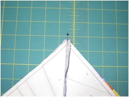At the top there is a lot of bulk because you have seams meeting as well as the paper. If you were to pin through all the layers you end up with a humped area that can be bulky and messy to sew through.