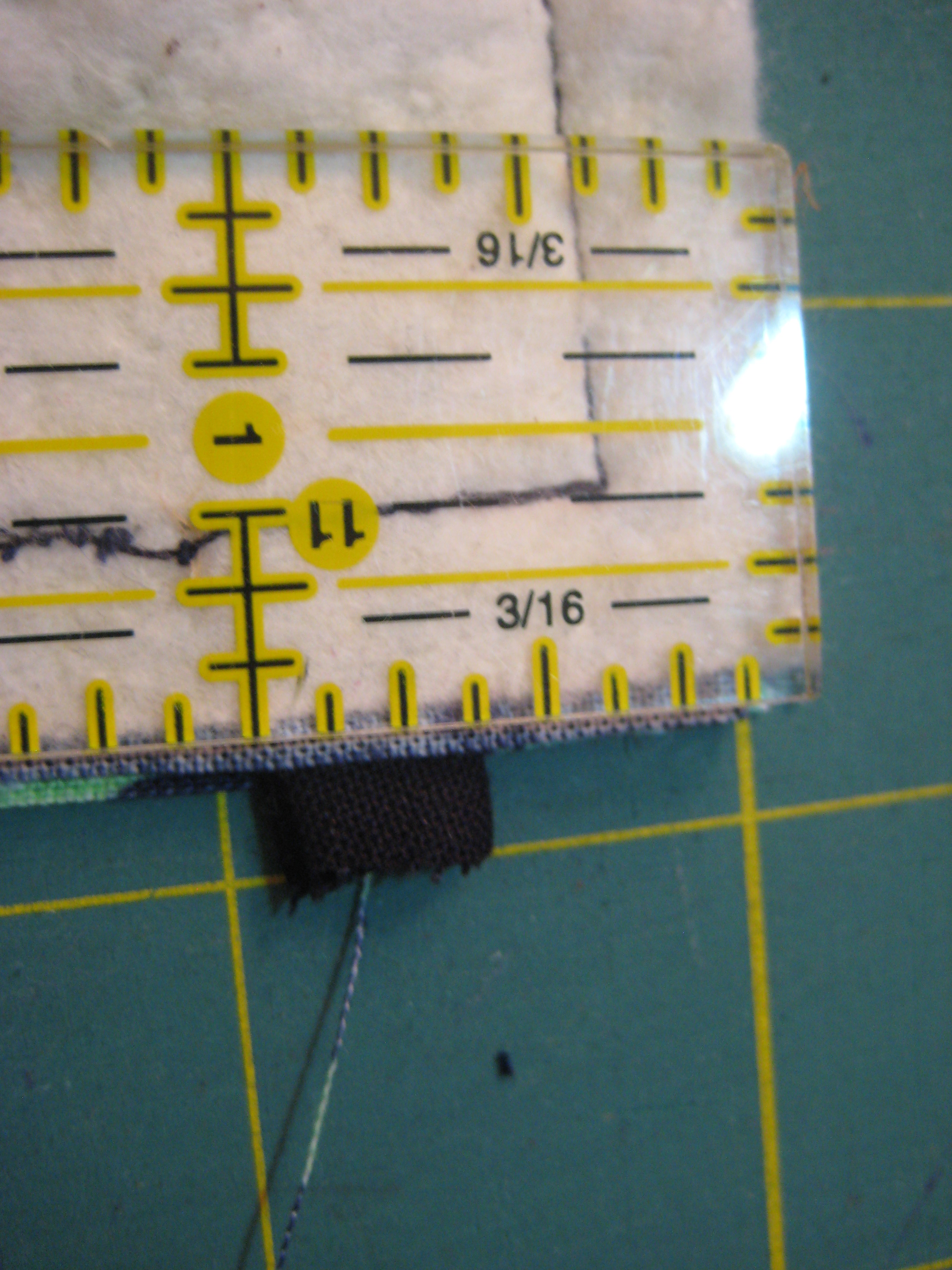 Stitch 1/8″ around the edge of the panel, closing the gap used for turning. Stitch a second seam 1/4″ to the inside of the first to make a nice finish.
