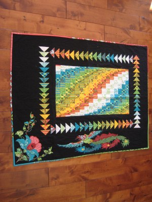 July 2020 featured my quilt Amethyst. This piece was made for the 2014 Hoffman Challenge and was quilted by Joan Nicholson of Maple Leaf Quilters. the quilt finishes 40″ x 40″, a perfect accent wall size. It was inspired by a piece of amethyst, which got me thinking about crystalline structures and how they come together, and this piece was the result.