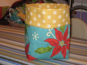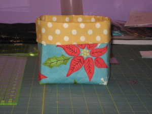 The Sweetpea Saddle Bag is a free pattern from BlueCalla. I love their bags as well, and have made a few. I was testing out the denim lookaline for Troll Brothers. Its got a water resistant backing and a denim look without actually being denim. The main flap was a generous donation of original Tula Pink Prince Charming frogs from a friend that I pieced together into a whole frog. It’s stunning with the bright gold hardware, and the perfect size when I just need the basics.