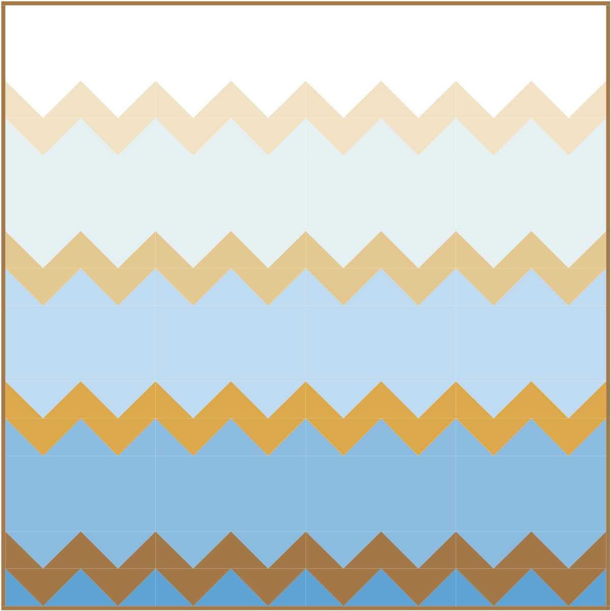 Sew the 19″ navy strips to two of the 42″ navy strips to make two side borders blocks 60 1/2″. Sew the 13″ navy strips to the remaining 42″ navy strips to make the top and bottom borders 53 1/2″. Sew the side borders to the side of the quilt top, matching ends and centers, and press towards the borders. Sew the top and bottom borders to the quilt top, matching ends and centers, and press towards the borders