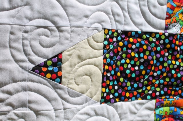 I quilted it with all over swirls and scribbles, like a doodling pencil line.