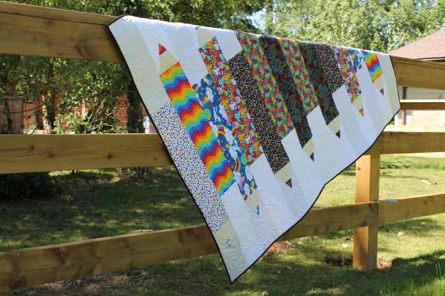 I loved True Colors so much I needed to express it in quilt form. I also wanted a quilt that could possibly be made with a jelly roll. While the jelly roll aspect was a fail, the quilt itself was a WIN. I just can’t seem to make a quilt small enough to suit jelly rolls…….but that’s okay! More fabric for you to love!
