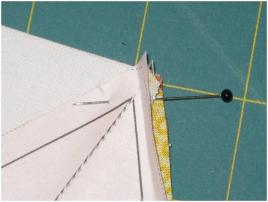 At the top there is a lot of bulk because you have seams meeting as well as the paper. If you were to pin through all the layers you end up with a humped area that can be bulky and messy to sew through.